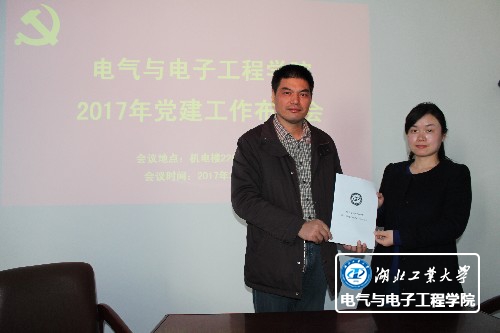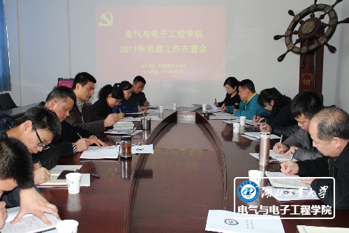 为贯彻落实校党委2017年初党建工作会议精神,3月2日,电气与电子工程学院党委在机电楼226会议室召开院党委(扩大)会议,专题布置了学院2017年党建工作。会议由院党委书记朱爱军主持,学院全体党委委员、各师生党支部书记参加了会议。