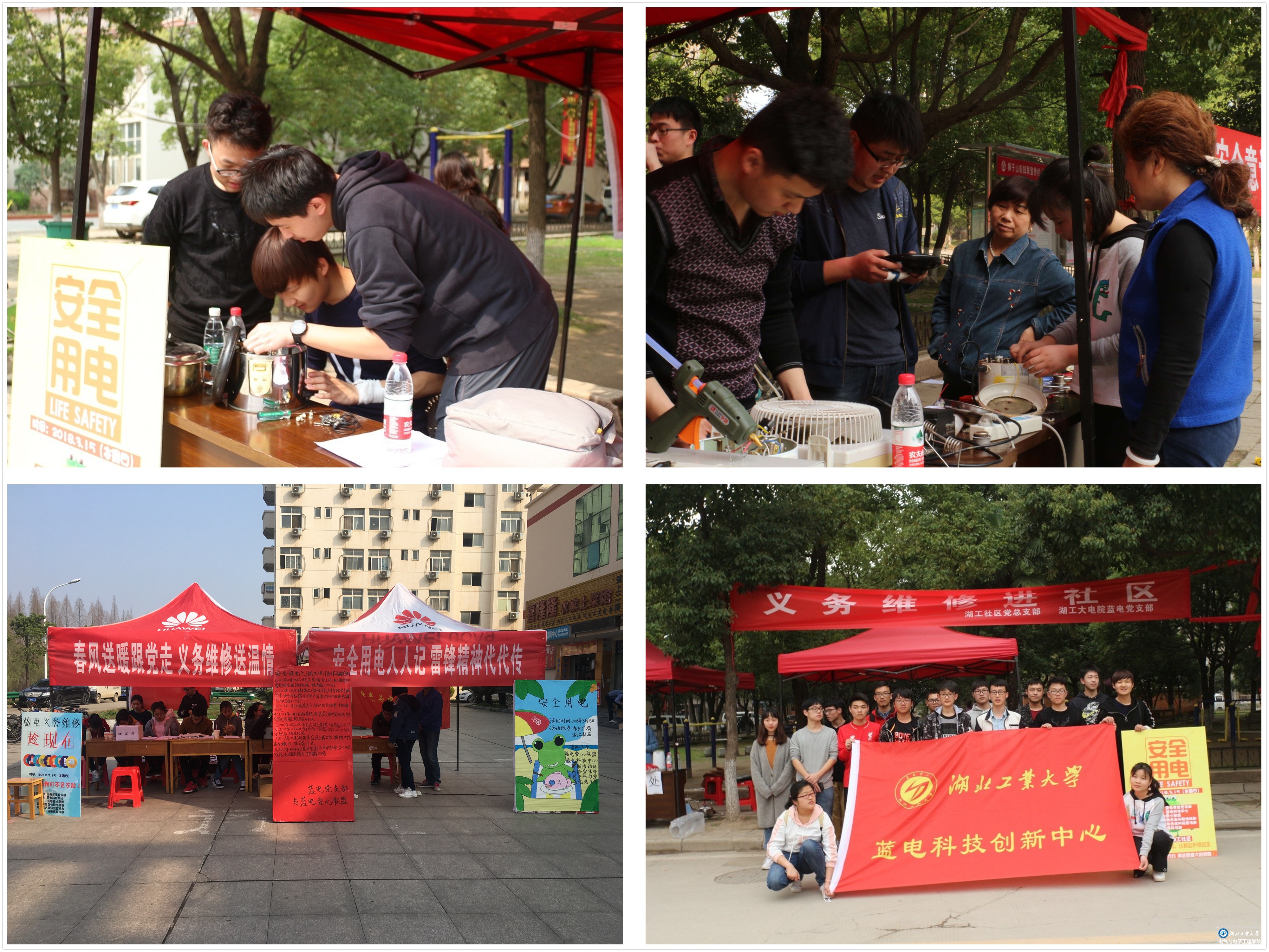 早上8点,蓝电科技中心的工作人员来到湖工社区和东区食堂,做好维修前的准备工作。中午时分,来到南区维修地点的人也逐渐增多,每位工作人员都耐心地帮助前来维修的居民。无论是电饭煲、电热水壶这样的家用大功率电器,还是遥控器、电动玩具这样的小功率电器,工作人员都能迅速发现故障原因,并熟练地解决问题。他们清晰的思路与娴熟的操作都展现出了他们出众的能力。截止到下午四点,活动一共为学校师生和湖工社区居民维修电器60余件。东区食堂广场的安全用电活动也在火热进行,工作人员通过有奖问答的方式来宣讲安全用电知识,参与群众在欢乐的活动气氛中了解到日常生活中的安全用电小知识。