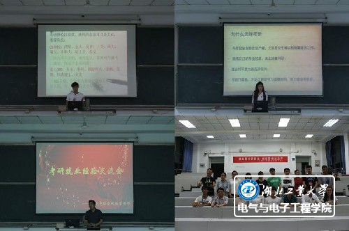 谈金玉良言,众山一览小。5月24日晚上6:30,由电院学生党建联合会举办的考研经验交流会在二教008教室顺利举行。本场交流会邀请了电气学院自动化系教师代表潘健,学工办翟良芳老师以及考研特约嘉宾12级学生曾红喜、高雨璇、王杰、田志远。