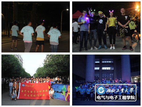 同学们在工作人员的指引下分为两路,夜跑路线上分布着许多有趣的小游戏关卡,需要同学们齐心协力共同完成方能通过。7点30分,同学们领到荧光道具后,主持人宣布本次荧光夜跑之旅正式开始。同学们早已按捺不住内心的激动,纷纷挥舞着荧光棒沿着路线奔跑。奔跑的人群身上的荧光道具发出点点荧光,涌动成河,成为了一道绚丽的五彩风景线。汇聚的荧光不但点亮了漆黑的夜晚,更点亮了大家心中对运动和生活的热情。一路上,荧光夜跑队伍吸引越来越多同学的加入,他们一边挥洒着青春的汗水,一边向前奔跑,追逐着心中的梦想。在全体参与活动师生的欢声笑语中,荧光夜跑活动顺利地落下帷幕。