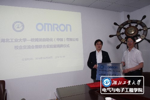 电气学院院长席自强介绍了学院的教学、科研、校企合作等方面基本情况。随后,松山信也对欧姆龙公司的历史、概况、业务以及“i-Automation”智能制造理念进行了介绍,重点介绍公司在信息智能化、控制精益化、人和机器新的协调领域开展的深入和可持续发展研究。李冬生与松山信也分别代表校企给MPS联合实训中心揭牌,校企双方与会人员就校企合作进行了交流,会后校企双方参观了联合共建的实验室。